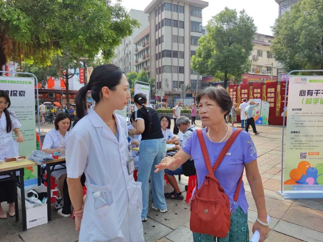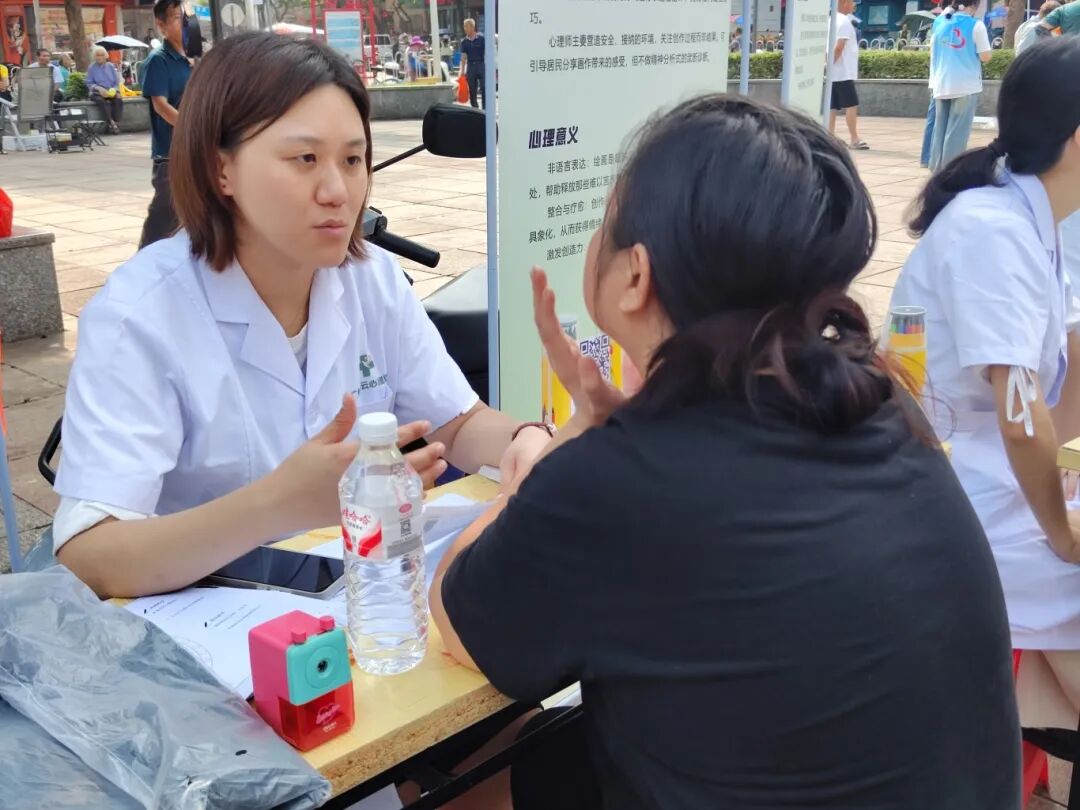 在精神科义诊环节,面对居民关于失眠、情绪焦虑等心理困扰的咨询,专家们结合护理部测得的血压等身体指标,耐心拆解不同群体的心理问题 —— 针对因家人担忧引发失眠的老年群体,专家从情绪调节与作息改善角度给予建议;面对受职场疲惫、青少年情绪波动等问题困扰的市民,专家们则用通俗易懂的语言科普精神健康知识。