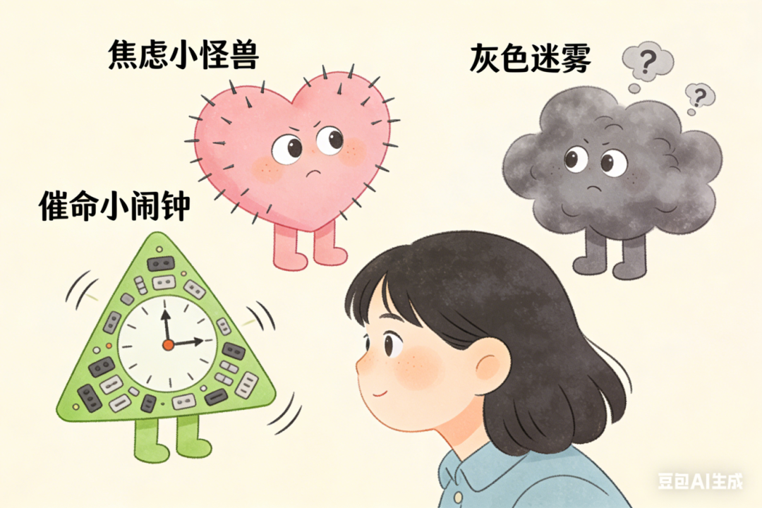 但如果换个说法:“有个叫‘焦虑小怪兽’的东西,今天又来烦我了”,瞬间就有了不一样的感觉:你是你,焦虑是焦虑,它只是一个来访的 “客人”,而不是你的 “标签”。