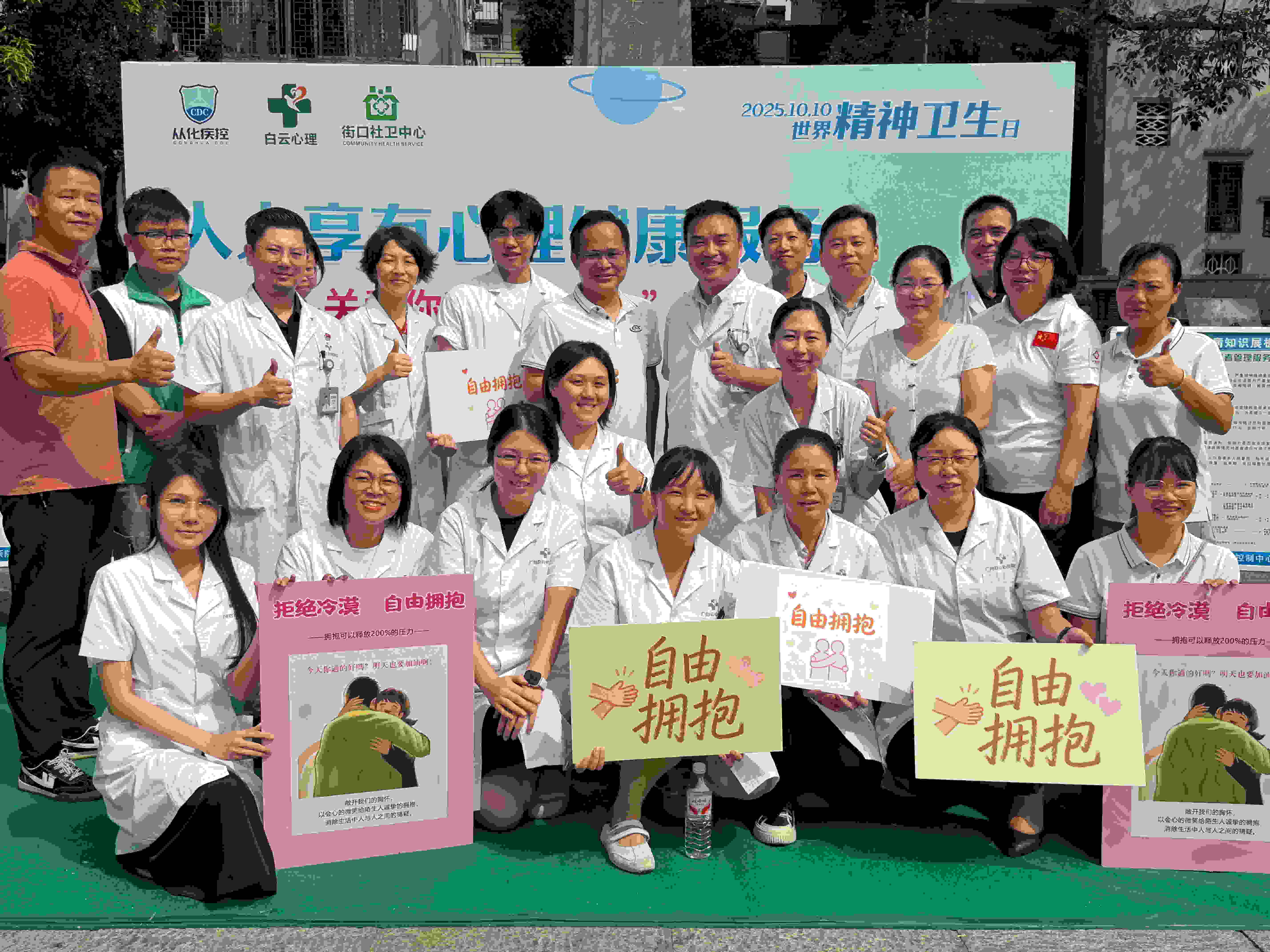 2025年10月10日是第34个世界精神卫生日,我国确定的全国宣传主题为“人人享有心理健康服务”。在此背景下,为普及精神卫生知识、增进社会关注、消除歧视与偏见,营造理解、接纳、关爱的社会氛围,并推动从化区精神卫生服务工作的深入开展,广州市从化区卫生健康局、从化区疾病预防控制中心与广州白云心理医院联合主办了题为 “ 人人享有心理健康服务——关爱你我,从‘心’开始 ” 的主题活动。